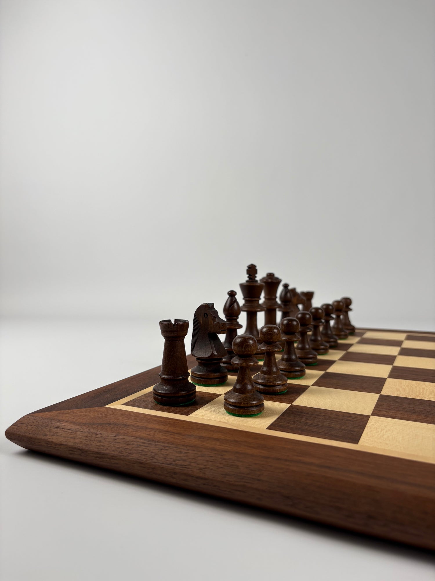 Cet échiquier artisanal est entièrement fabriqué à la main dans mon atelier à Lille, à partir de bois massif.